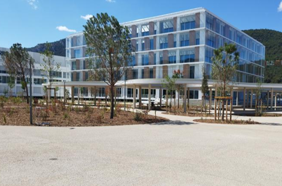 Cemex livre un béton désactivé à base de granulats locaux pour l’aménagement paysager du campus scientifique, depuis son unité de production aubagnaise située à moins de dix kilomètres du chantier.