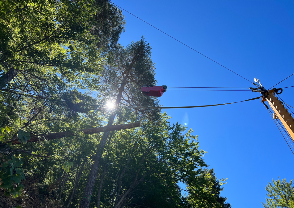 Cependant, le relief escarpé rend très difficile l’accès à la forêt par les engins d’exploitation. Pour relever le défi, l’ONF a proposé à la commune le débardage par câble, une technique d’exploitation alternative dans des conditions difficiles. Pour compenser le coût de cette exploitation, le choix a été fait de la vente de bois façonné en contrats d’approvisionnement.