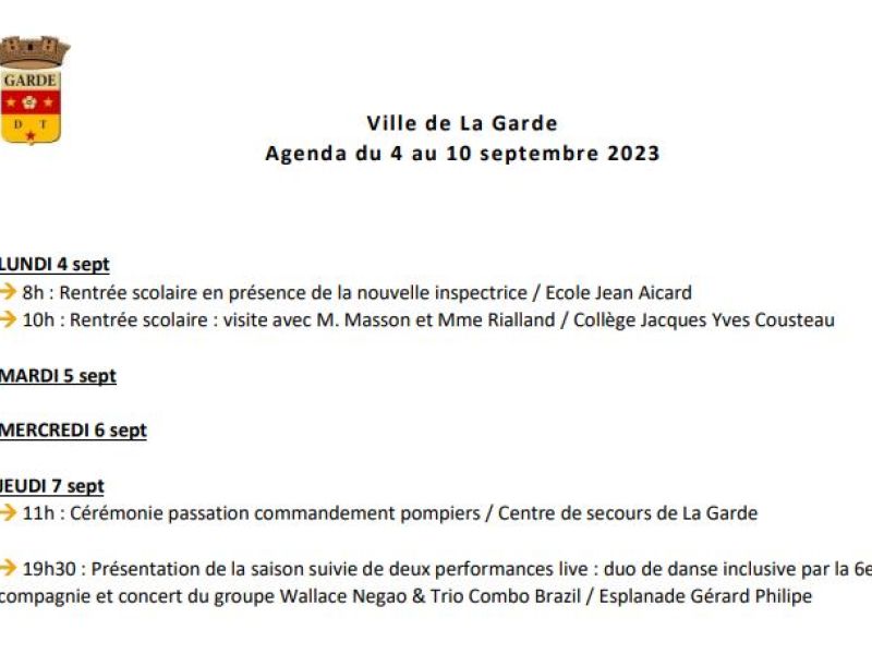 Sur l’agenda de la Ville du 4 au 10 septembre.