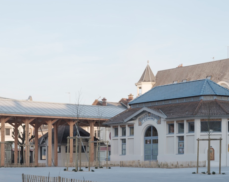 Lâme, Réhabilitation et extension du Marché Couvert + requalification de la Place de Chauny (02), 2025 © Jamet-Guedj