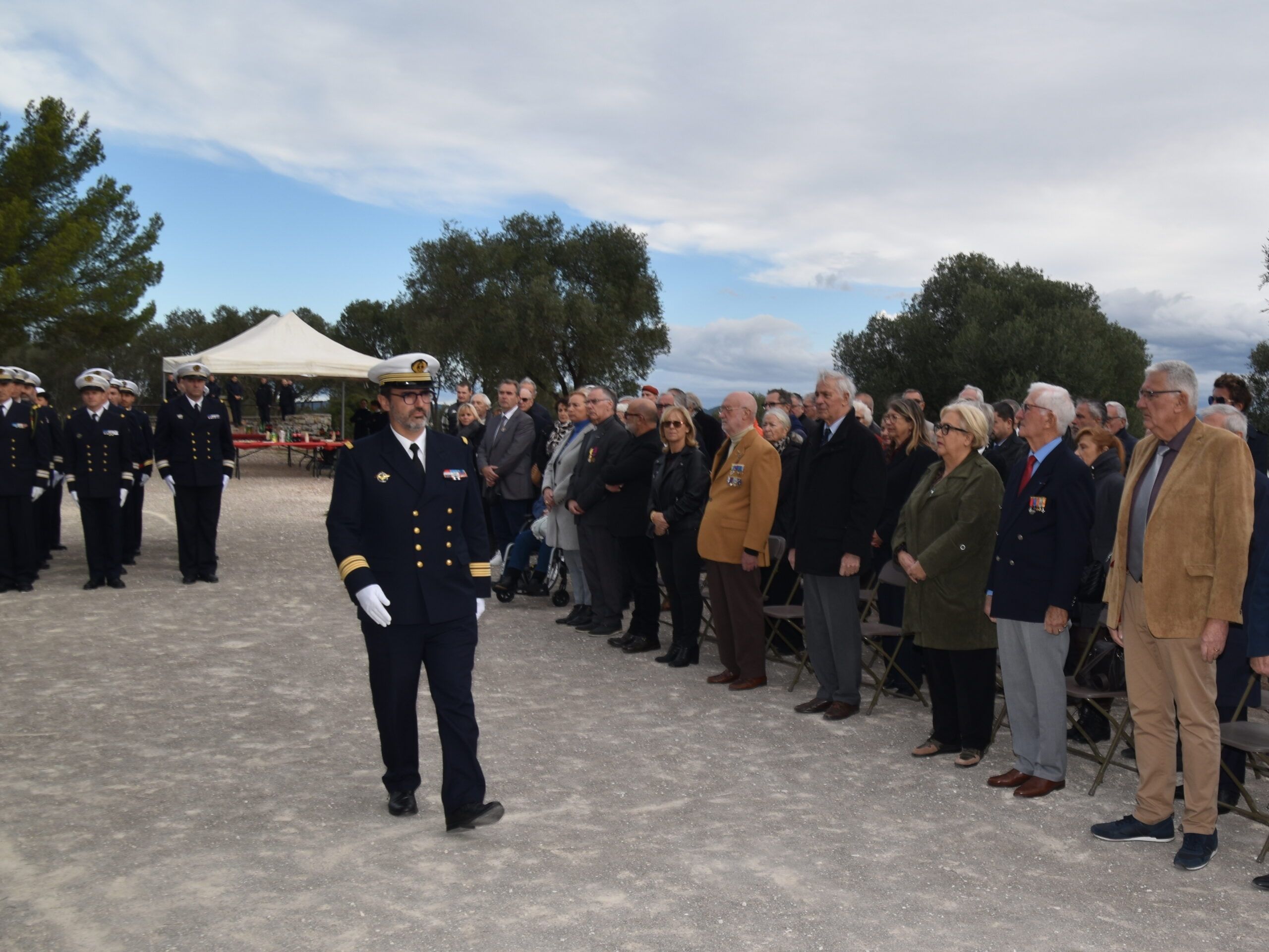 Familles des marins du ciel disparus, marins en service, associations patriotiques et autorités civiles et militaires, se sont rassemblées lors d’une cérémonie militaire présidée par le contre-amiral Serge Bordarier, commandant la force de l’Aéronautique navale, en présence de Nathalie Werquin, représentant Stéphane Rambaud, député de la circonscription, Jean-Pierre Giran, président de la Métropole et maire de Hyères, Francis Roux, conseiller départemental, Prix Pierrat, conseiller défense de La Londe-les-Maures et Yves Boyer, président du Souvenir Français de La Londe-les-Maures.