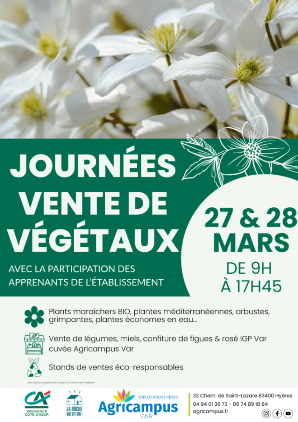 Le vendredi 27 et le samedi 28 mars 2026 de 9h à 17h45, Agricampus Var à Hyères organise une grande vente de plantes, d’arbustes et de légumes locaux, cultivées par ses élèves, ouverte à tous.