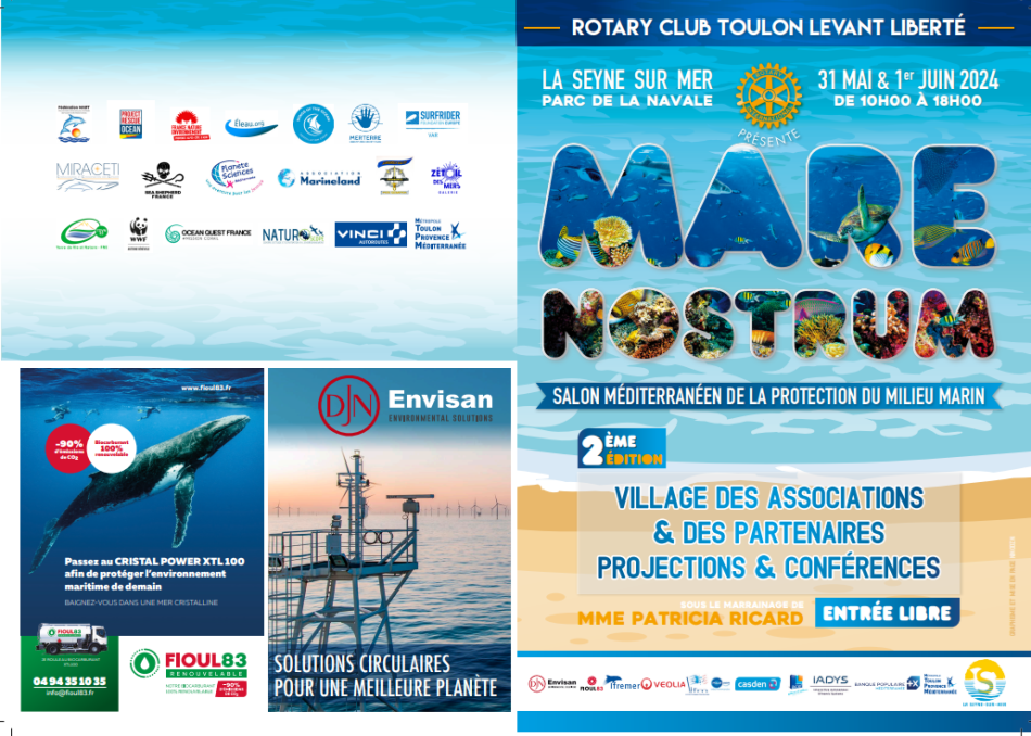 2ème édition de « Mare Nostrum », salon méditerranéen de la protection marine, le vendredi 31 mai à 11 heures sur le parc de la Navale.