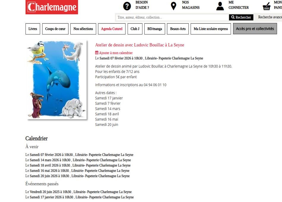 Atelier de dessin animé par Ludovic Bouillac à Charlemagne La Seyne de 10h30 à 11h30.