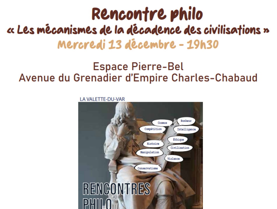 LA VALETTE DU VAR : Rencontre philo « Les mécanismes de la décadence des civilisations »