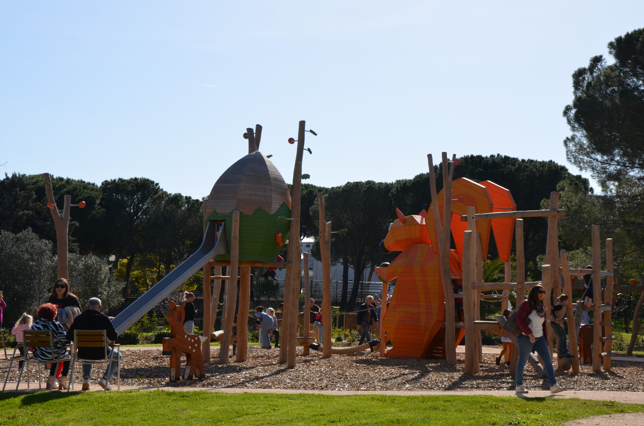 Gil Bernardi a rappelé que ce Grand Jardin est agréable pour tous, mais imaginé en priorité pour les enfants : « Le parc offre une kyrielle d’activités. Dans les aires de jeux, ludiques, inclusives, intégrées et créées sur mesure pour ce site, la jeunesse peut pratiquer 17 actions : grimper, sauter, glisser, se cacher, s’équilibrer, se balancer et écouter dans « la Forêt secrète des écureuils » et dans « Le clos des noisettes ». Voilà un programme réjouissant » !