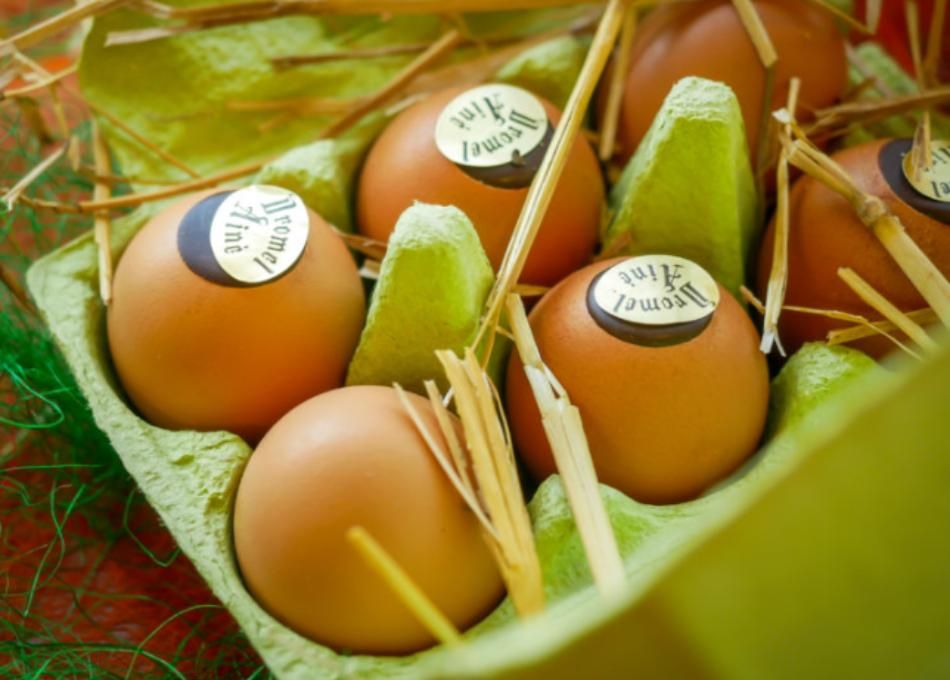 Vous trouverez en boutique ou sur notre site internet les intemporels Œufs, Poules, Cloches et Poissons en chocolat au lait ou en chocolat noir « garnis riches »