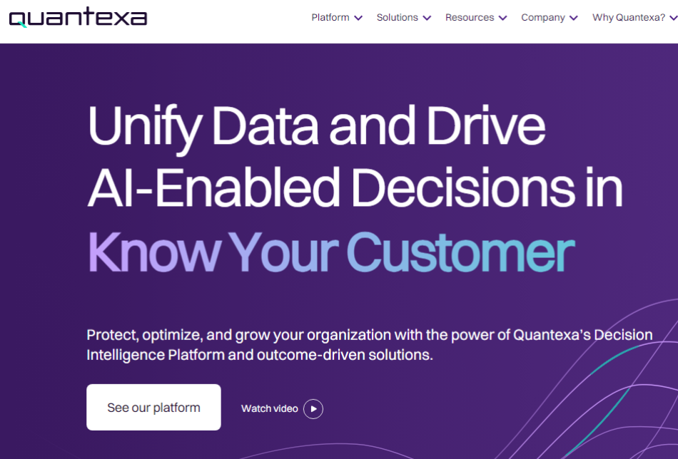 Pionnier de l’intelligence décisionnelle, Quantexa est un éditeur mondial de logiciels d’IA, de données et d’analyse qui permet aux organisations de prendre des décisions opérationnelles fiables à l’aide de données en contexte. En utilisant les dernières avancées en matière d’IA, la plateforme d’intelligence décisionnelle de Quantexa les aide à découvrir les risques cachés et les nouvelles opportunités en unifiant les données en silos et en les transformant en ressources réutilisables les plus fiables. Elle permet de relever des défis majeurs en lien avec la gestion des données, la veille client, la connaissance du client, la criminalité financière, les risques, la fraude et la sécurité, tout au long du cycle de vie de la relation client.
