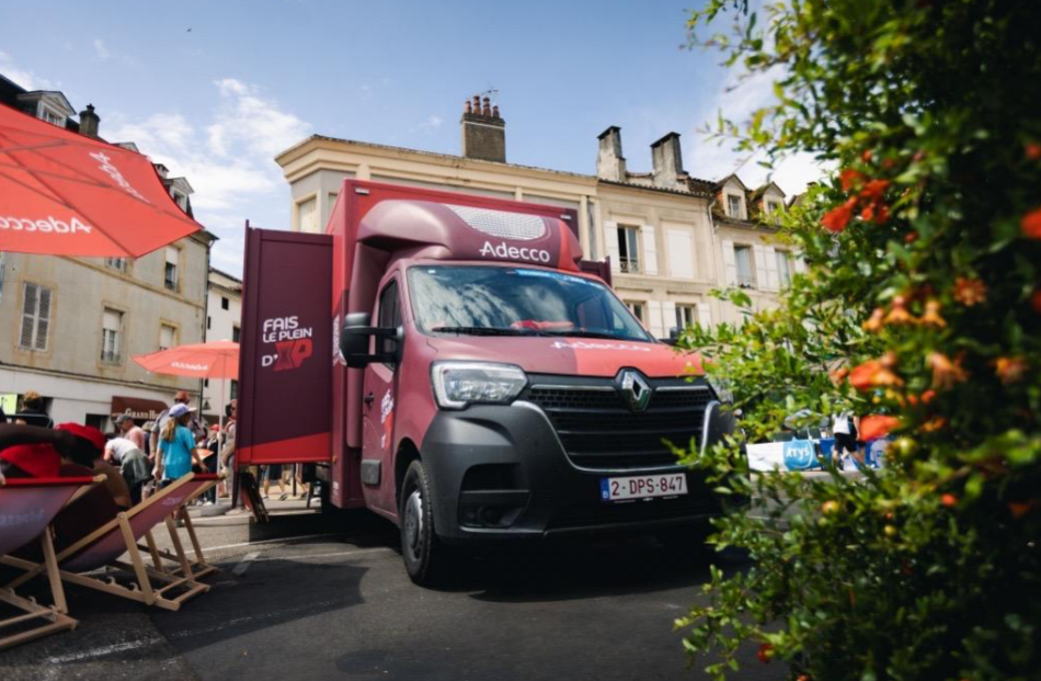 Adecco, partenaire du Tour de France depuis 2018, animera une opération emploi dans son camion itinérant « Fais le plein d’XP » les 19, 20 et 21 juillet à Nice.