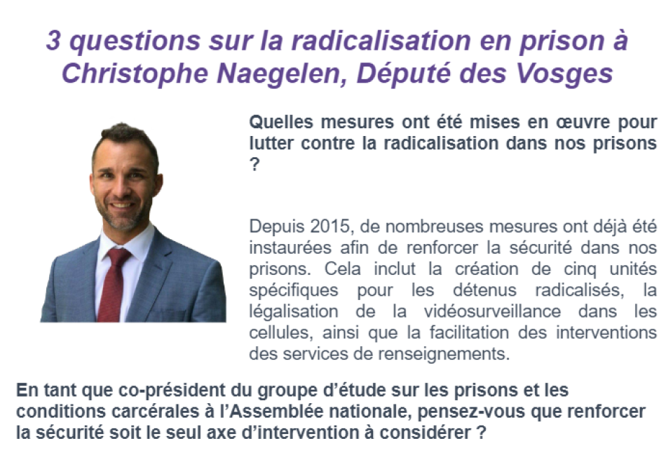 PARIS : 3 questions sur la radicalisation en prison à Christophe NAEGELEN