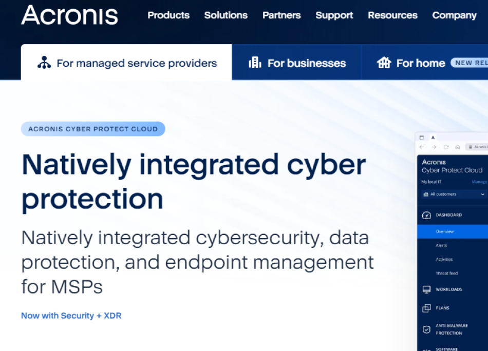 · Conformité et protection : la solution permet aux MSP de se protéger contre les menaces modernes et de se conformer aisément aux exigences de cyber assurance. Avec les technologies intégrées d’Acronis, les partenaires renforcent leur posture de sécurité conformément aux normes les plus élevées de protection et de conformité.