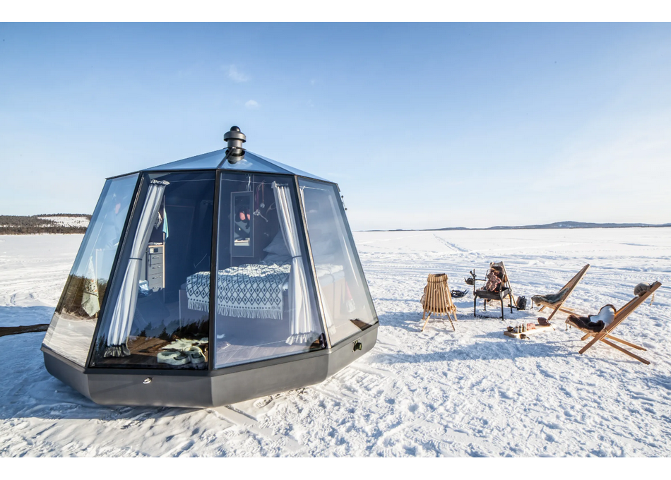 Chambre en verre flottant (Jokkmokk, Norrbottens län, Suède)