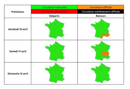 PARIS : Bison Futé – Les prévisions nationales de circulation du vendredi 10 au dimanche 12 avril