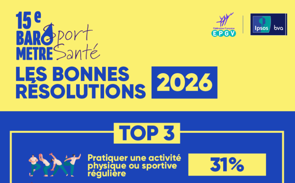 Selon la 15ème édition du Baromètre Sport-Santé, publiée par la FFEPGV en partenariat avec l’institut Ipsos bva, la pratique sportive reste la résolution phare, mais d’autres envies liées au bien-être personnel montent en puissance : passer plus de temps avec ses proches, se détendre et prendre soin de son corps.