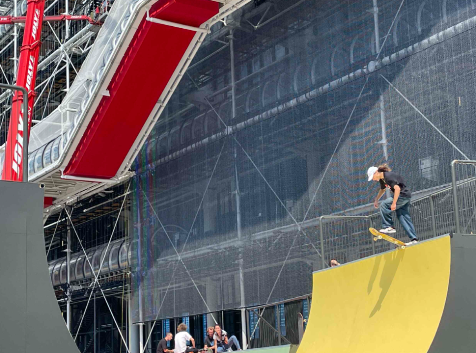 Métamorphosé, le lieu emblématique devient plus que jamais un nouveau lieu de rencontres, une agora urbaine où la culture du skate s’élargit à la musique, aux looks et aux postures du corps. Telle une mini-place conçue pour remplir la célèbre place parisienne, ce lieu inédit promet de devenir un lieu incontournable de la capitale pour cet été 2024. Ici, la rampe de skate est entourée de gradins et d’escaliers, de coursives et de podiums où les visiteurs peuvent venir marcher, se reposer, se réunir ou s’adonner à la glisse…