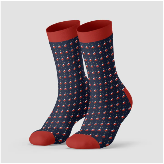 Des chaussettes tricolores pour les matins d’hiver. Parce que l’élégance commence par les détails qu’on ne voit pas. (15 €)