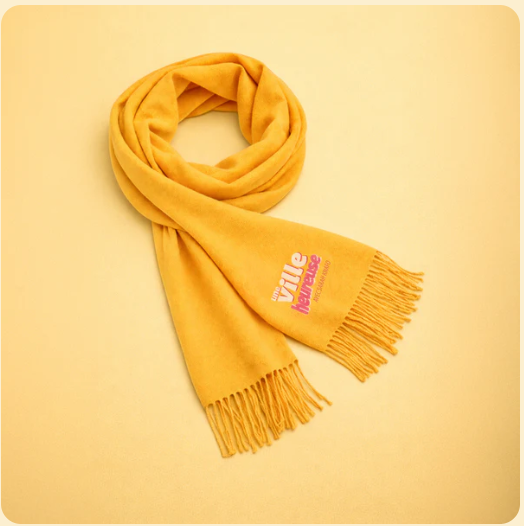 L’écharpe : Un drap de pur soleil pour porter autour du cou la chaleur de nos idées dans la rue.