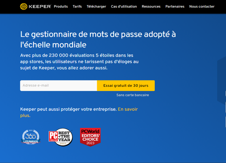 Keeper Security transforme la façon dont les personnes et les organisations du monde entier sécurisent leurs mots de passe, leurs secrets et leurs informations confidentielles. La plateforme de cybersécurité de Keeper, facile à utiliser, est construite sur une base de sécurité Zero Trust et à Zero-Knowledge pour protéger chaque utilisateur sur chaque appareil. La solution se déploie en quelques minutes et s’intègre de manière transparente à n’importe quelle stack technique pour prévenir les violations, réduire les coûts du service d’assistance et garantir la conformité. Utilisé par des millions de personnes et des milliers d’organisations dans le monde, Keeper est le leader de la gestion des mots de passe, de la gestion des secrets, des accès privilégiés, des accès à distance sécurisés et de la messagerie chiffrée. Protégez ce qui compte sur KeeperSecurity.com.