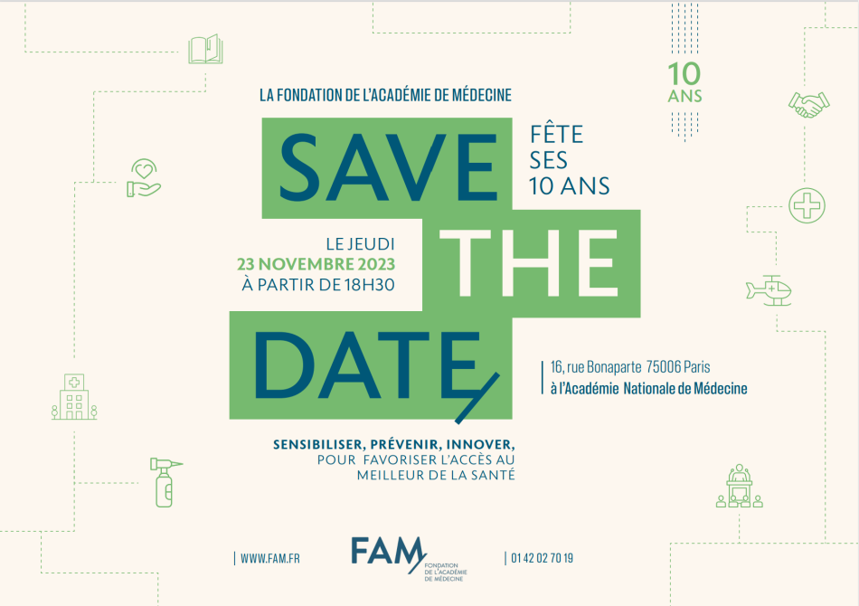 La Fondation de l’Académie de Médecine fête ses 10 ans le jeudi 23 novembre 2023 à partir de 18h30.