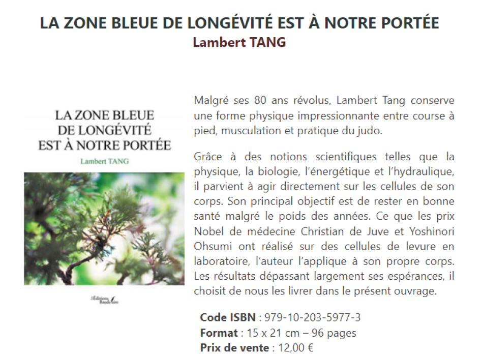 PARIS : La zone bleue de longévité est à notre portée de Lambert Tang