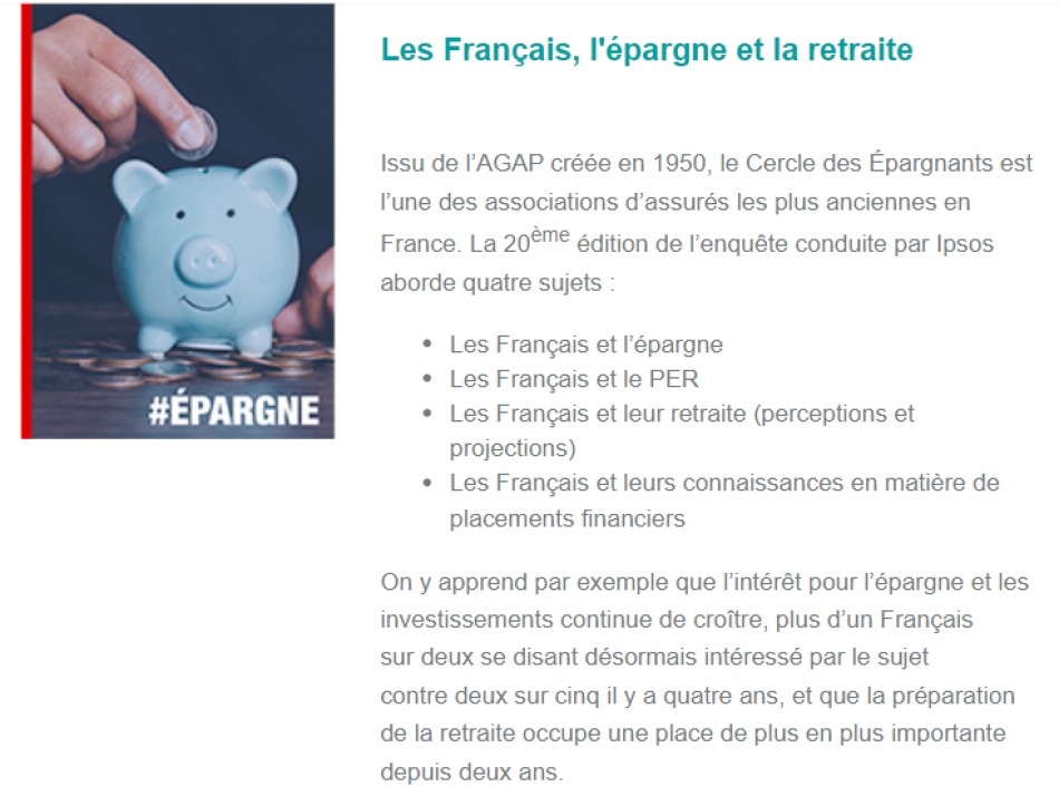 PARIS : Les Français, l’épargne et la retraite