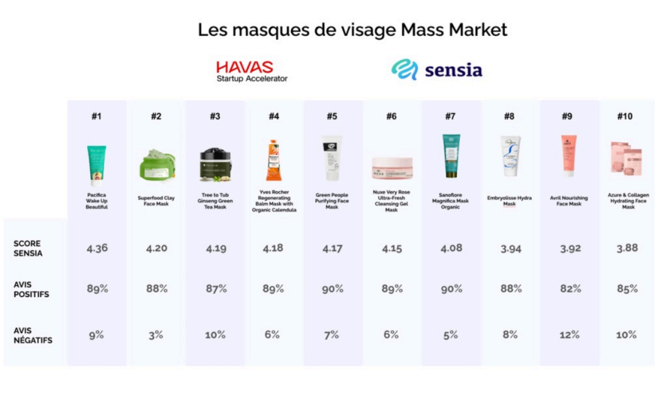 Face à une demande croissante pour des soins de beauté respectueux de l’environnement et éthiquement responsables, Sensia a choisi de concentrer cette recherche sur des masques faciaux qui non seulement embellissent la peau mais incarnent également les valeurs de durabilité et de responsabilité sociale. Chaque produit analysé porte des labels tels que vegan, cruelty-free ou bio, ou provient de marques qui s’engagent activement à minimiser leur impact environnemental. Cette étude offre une nouvelle perspective sur l’efficacité des produits tout en évaluant l’alignement des pratiques des marques avec les principes de la responsabilité sociale des entreprises (RSE). Elle révèle comment cet alignement influence positivement l’image de marque aux yeux des consommateurs aujourd’hui. Sensia et Havas Startup Accelerator vous invitent à découvrir comment des pratiques éthiques et durables peuvent transformer l’industrie de la beauté et répondre aux attentes des consommateurs de demain.