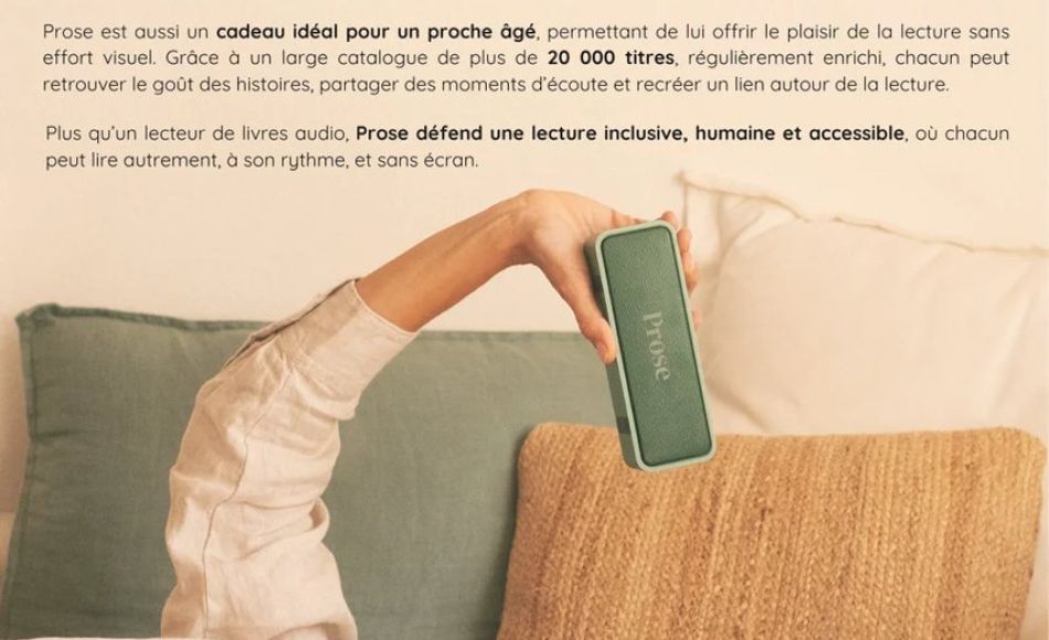 La marque française Prose présente un lecteur de livres audio ultra-simple, sans écran ni application, conçu pour l’inclusion et la déconnexion.