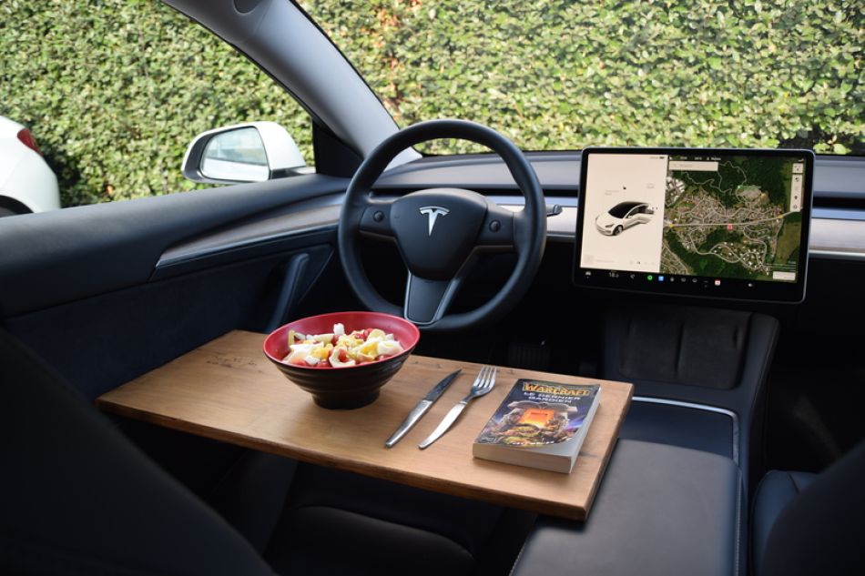 Ma Tesla, je l’aime tellement que je travaille dedans grâce au joli bureau sur-mesure et made in France de EscapeCase.