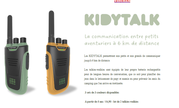 Les KIDYTALK permettront aux petits et aux grands de communiquer jusqu’à 6 km de distance.