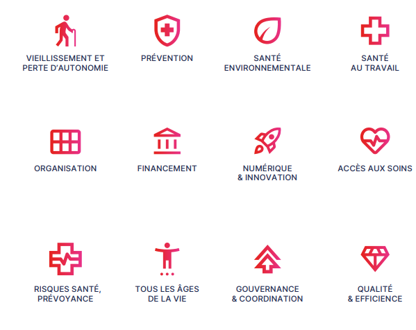 Le travail mené se donne l’ambition de contribuer à une future refondation systémique au service de l’intérêt général, sur le périmètre du système de santé et de protection sociale. Les grandes phases du dispositif permettront d’identifier les sujets prioritaires, les points de consensus, les points d’accord majoritaires, les questions en débat et les éléments de dissensus.