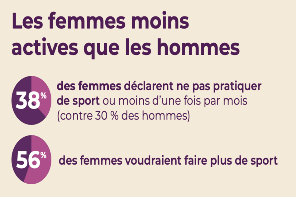 Alors que 38% des Françaises ne pratiquent pas ou quasiment jamais de sport, plus d’une sur deux souhaiterait en pratiquer plus souvent.
