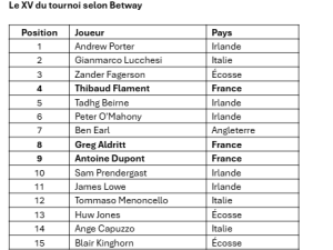 ·         Seuls 3 français font leur apparition dans le XV de départ du tournoi, malgré leur victoire finale.