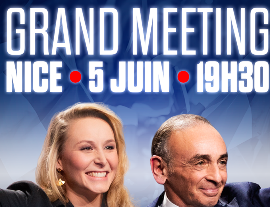 Eric Zemmour vous attend avec Marion Maréchal, tête de liste Reconquête, pour le dernier meeting de cette campagne des élections européennes, le mercredi 5 juin à 19h30, à Nice.