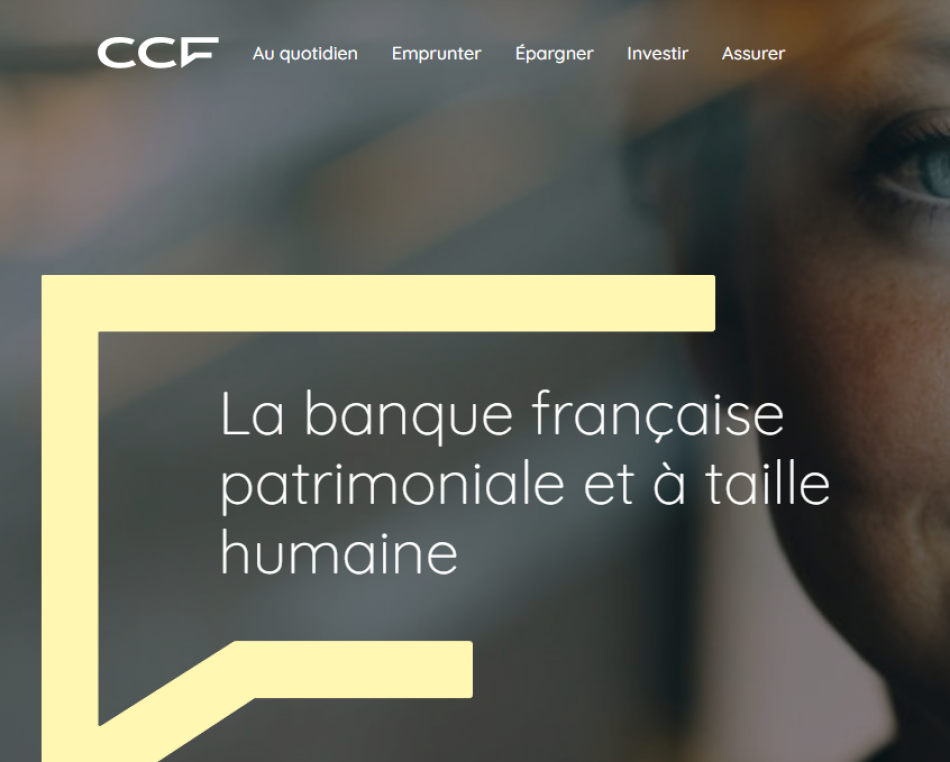 Banque française, patrimoniale et à taille humaine, le CCF propose un accompagnement sur mesure aux particuliers et aux professionnels. Le CCF offre excellence relationnelle, expertise, ainsi que fluidité et simplicité.