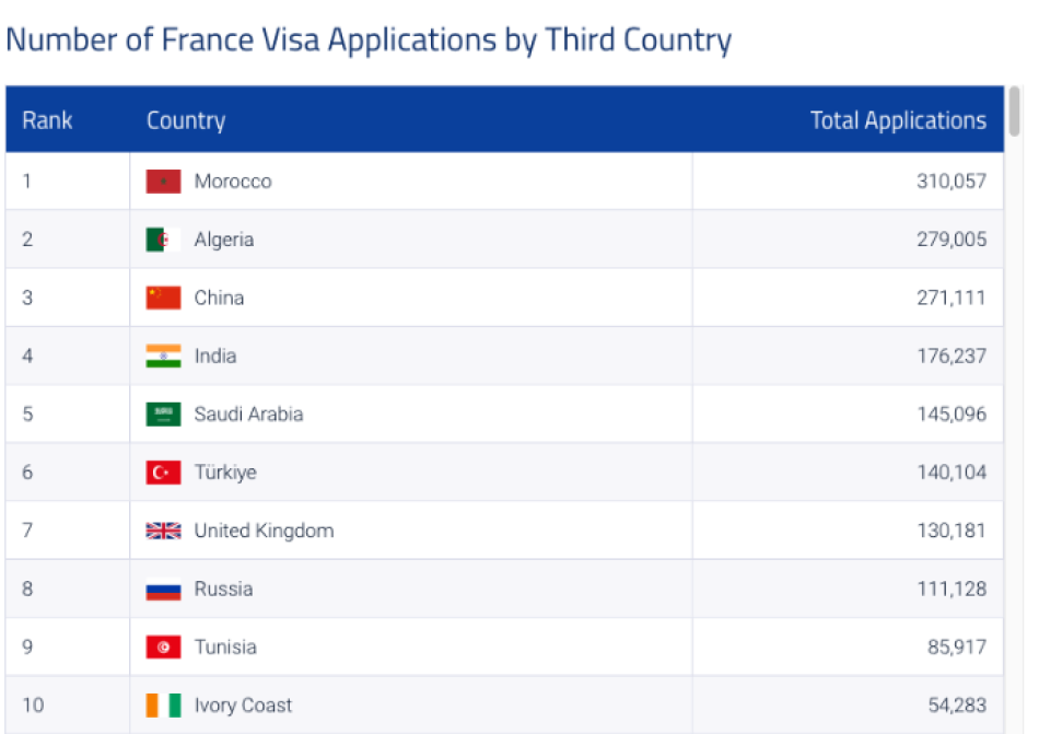 Les algériens et les marocains ont été ceux qui ont demandé le plus de visas Schengen en 2023 loin devant les chinois. Ils sont aussi ceux qui ont obtenu le plus la nationalité française…