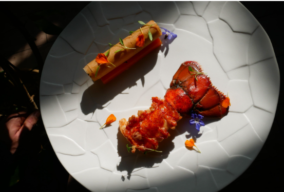 Au menu de cette table de créateur, l’audace du terre-mer et des associations qui taquinent les codes embrassent la cuisine méditerranéenne traditionnelle : l’agneau El Xaï, le cochon Tirabuixò, le veau primeur des Pyrénées, les poissons issus de la pêche locale, les gambas de Palamos, le chèvre frais d’Opoul, le safran ou encore l’huile d’olive du pays y sont agrémentés des herbes vivaces, cultivées sur la place, comme la feuille d’huître ou le basilic pourpre.