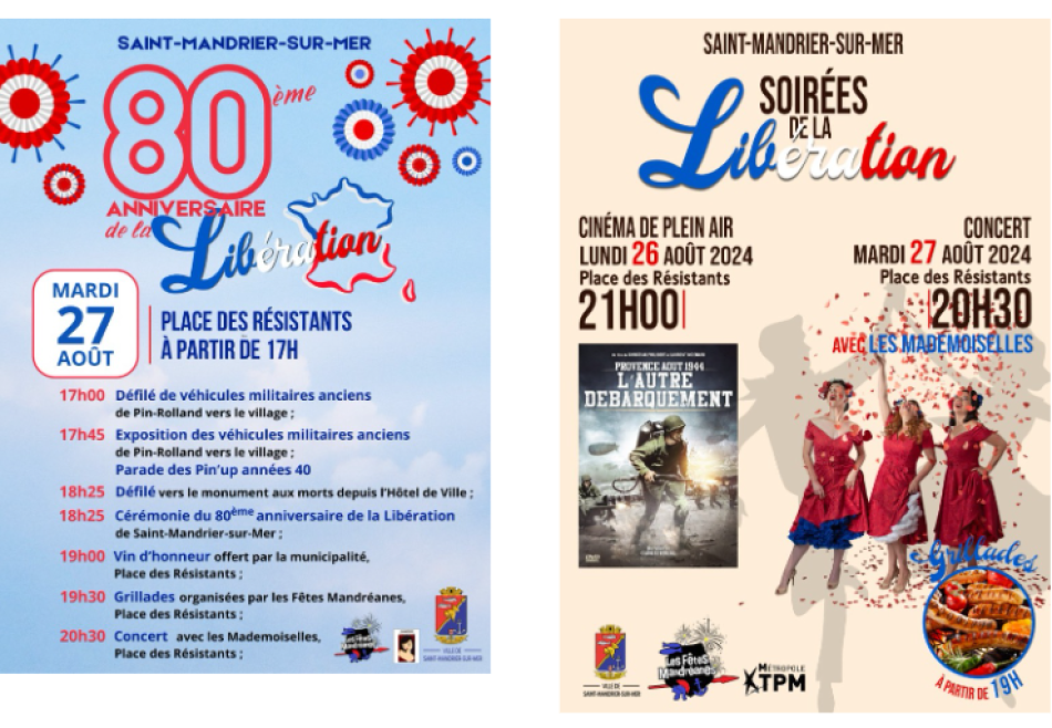· Défilé de véhicules anciens et cérémonie commémorative du 80ème anniversaire de la libération, à partir de 17h, sur la place des Résistants.