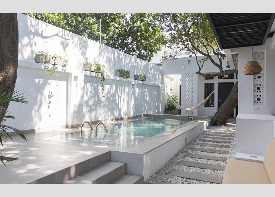 Cette villa, nichée dans le centre historique de Santa Marta, se distingue par son architecture typiquement républicaine et son intérieur minimaliste aux accents modernes.