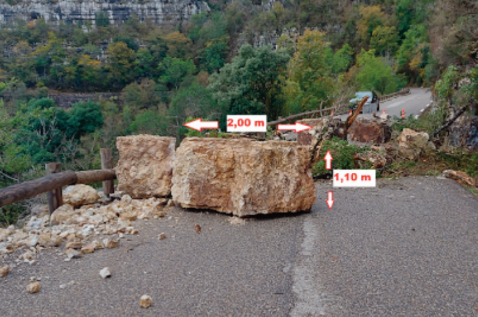 Une première inspection du site par les services départementaux a été réalisée dès le 6 novembre. Cette inspection identifie, en plus des matériaux déjà tombés, de nombreux blocs représentant plusieurs dizaines de m3 de roche en équilibre instable sur la falaise. Ses blocs doivent être purgés et évacués avant toute remise en circulation sur la RD. Après une nouvelle inspection, plus détaillée, le Département a procédé à une intervention manuelle pour purger la falaise des nombreux blocs identifiés.