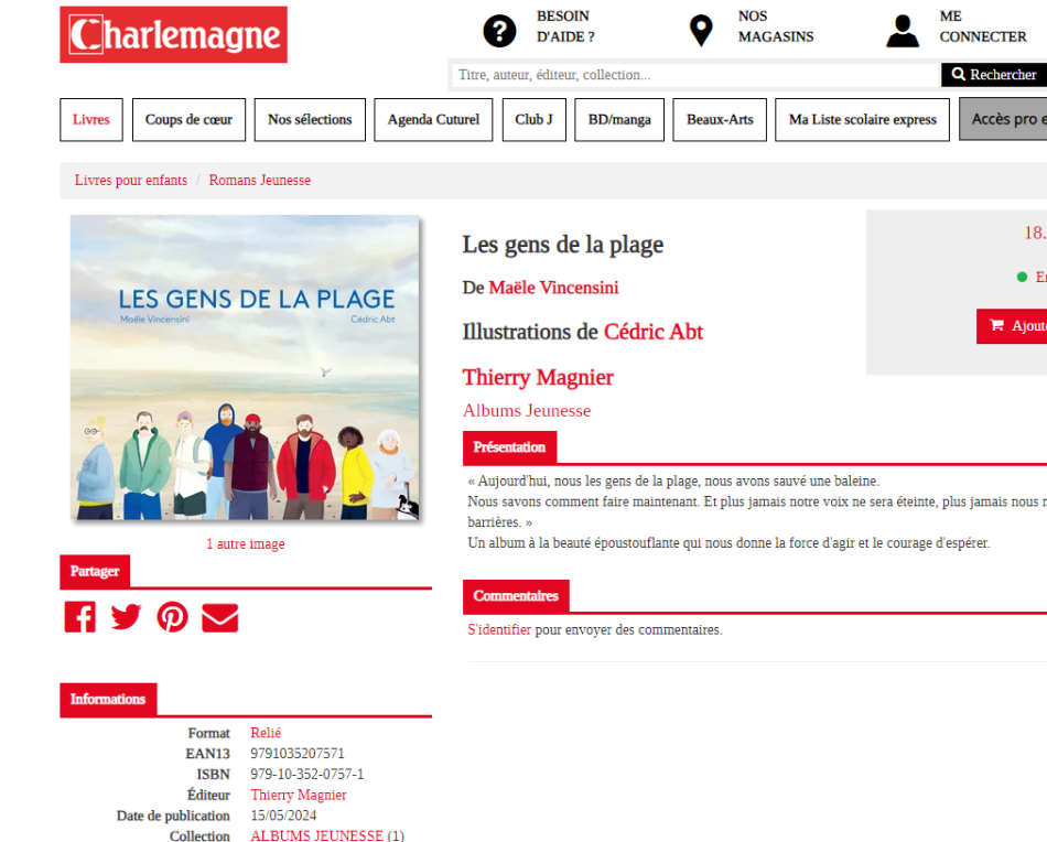 Une baleine s’échoue sur une plage : les habitants des alentours se rassemblent pour l’aider à repartir dans l’eau, mais bientôt des barrières s’érigent : interdit d’approcher. Les gens de la plage oseront-ils braver l’interdit ? Un très beau livre sur la force du collectif, pour petits et grands.