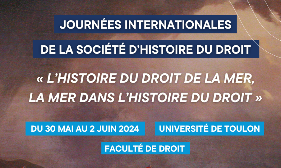 Du 30 mai au 2 juin 2024, la Faculté de Droit de l’Université de Toulon accueillera pour la première fois le prestigieux Colloque International de la Société d’Histoire du Droit.